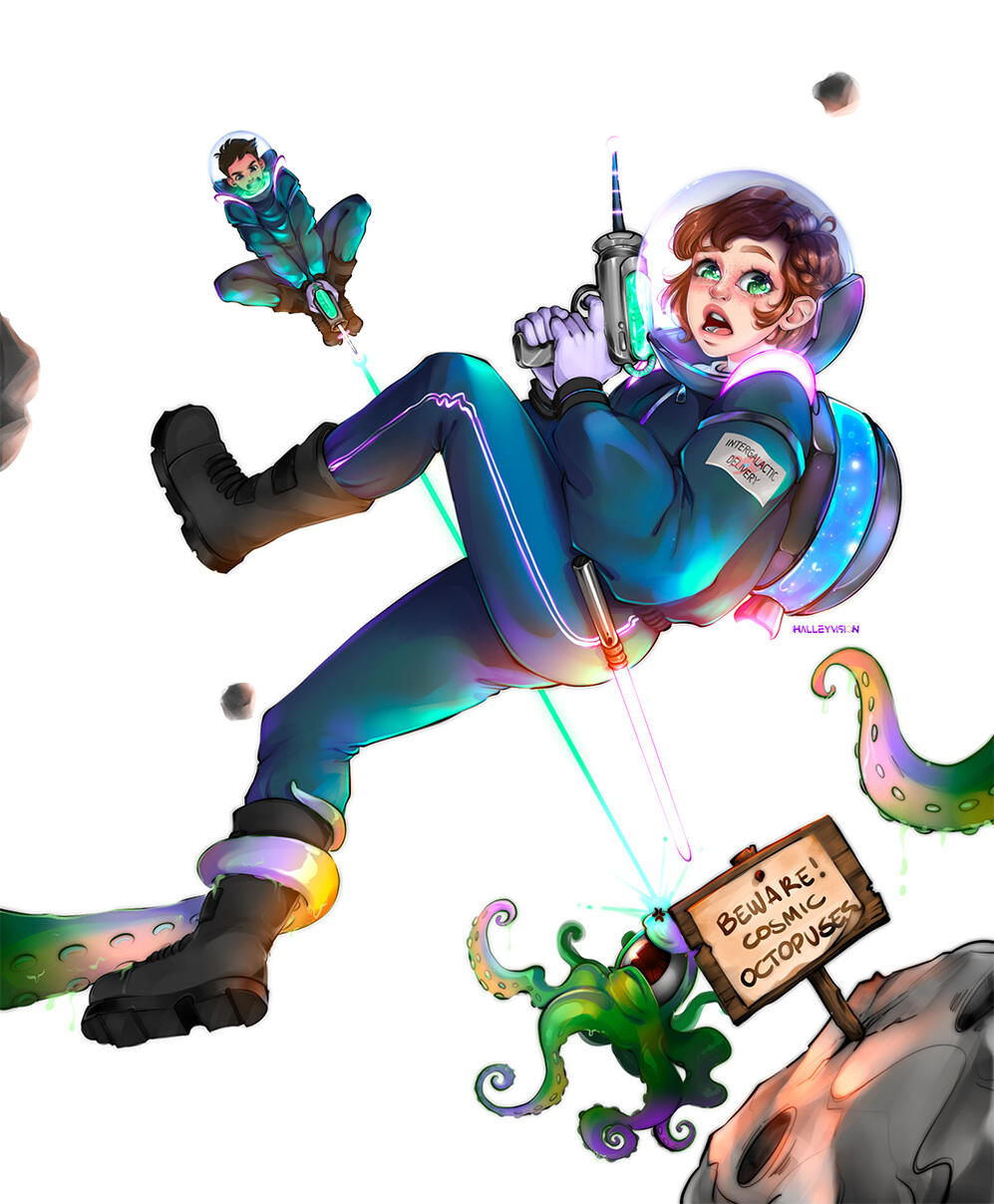 Tania in art "Halleyvision" is an Italian artist and character designer.Her background in illustrating characters has lead to an art career spanning 8 years and to build an audience on Instagram (now counting 70k followers) and recently on Youtube, with drawing process videos, tutorials and art vlogs.During the first four years, she worked with one the biggest Twitch networks in Italy, creating assets, graphics and emotes for streamers, while also freelancing for private clients.Today, her goal is to illustrate compelling book covers for children and young adults, to hopefully create the magical visual experience she had in her childhood with her favourite books, bringing characters to life.